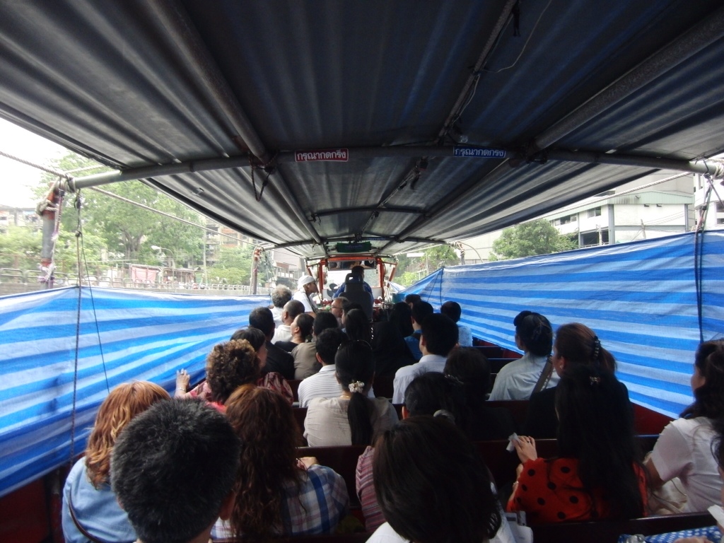 Auf dem Klong ging es wieder zum Wat Sakhet (Golden Mount), da die Straßen wie immer verstopft waren und das Boot das zweitschnellste Fortbewegungsmittel in dieser Großstadt ist – nur geschlagen von den Skytrains weit über den Straßen …