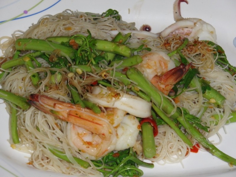 Mee Phat Krachet – Fried Noodles with Mimosa and Seafood mit der besten Limesauce die wir kennen …