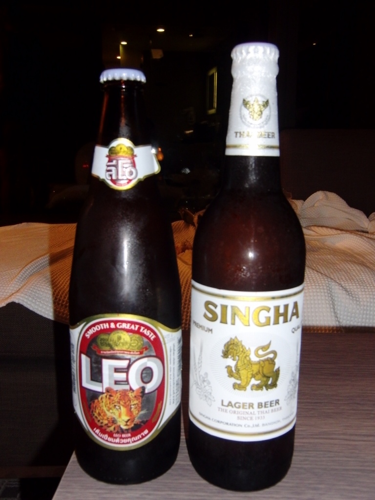 Auf ihre Weise einzigartig süffig, fruchtig und angenehm herb im Abgang und das bei nur 5 % Alkoholgehalt. Das LEO wirkt etwas fruchtiger und leichter, das SINGHA dafür ausgewogener. Abgeschlagen ist das CHANG auf Platz drei abgerutscht – es erinnerte einfach zu sehr an die österreichischen Biere und wollte nicht in dieses unbeschwerte Lebensgefühl hier in Bangkok passen … 😉