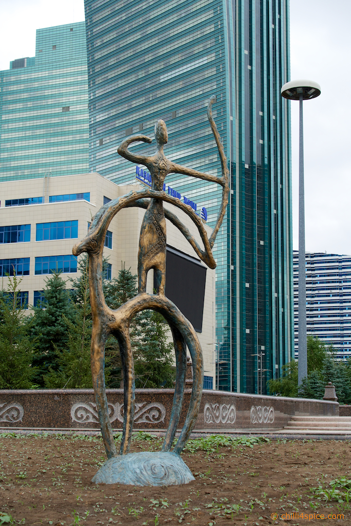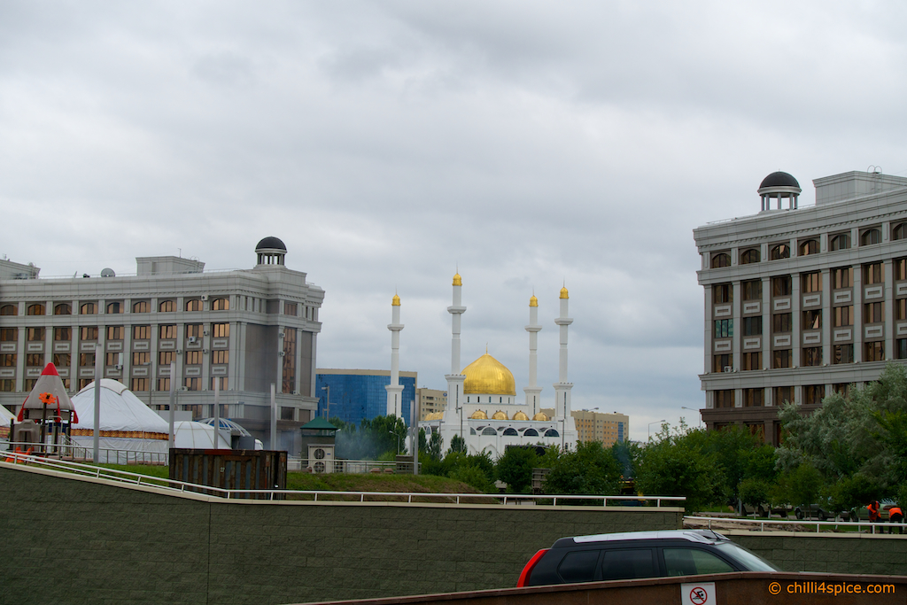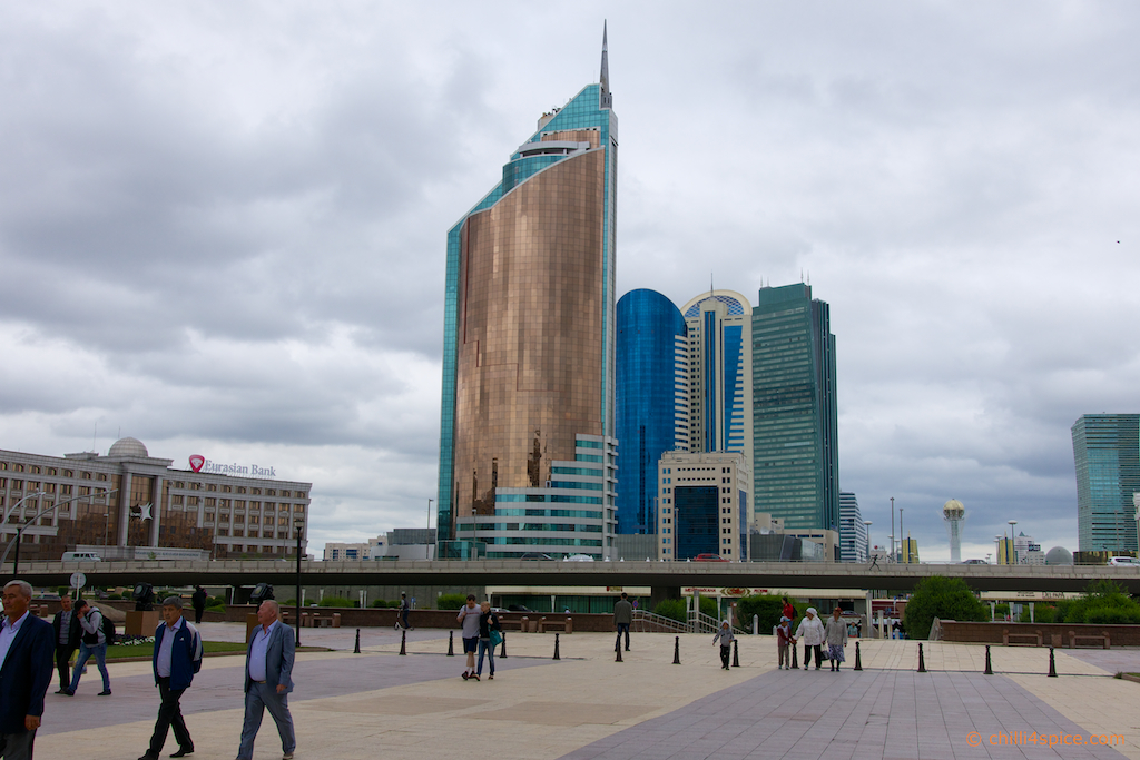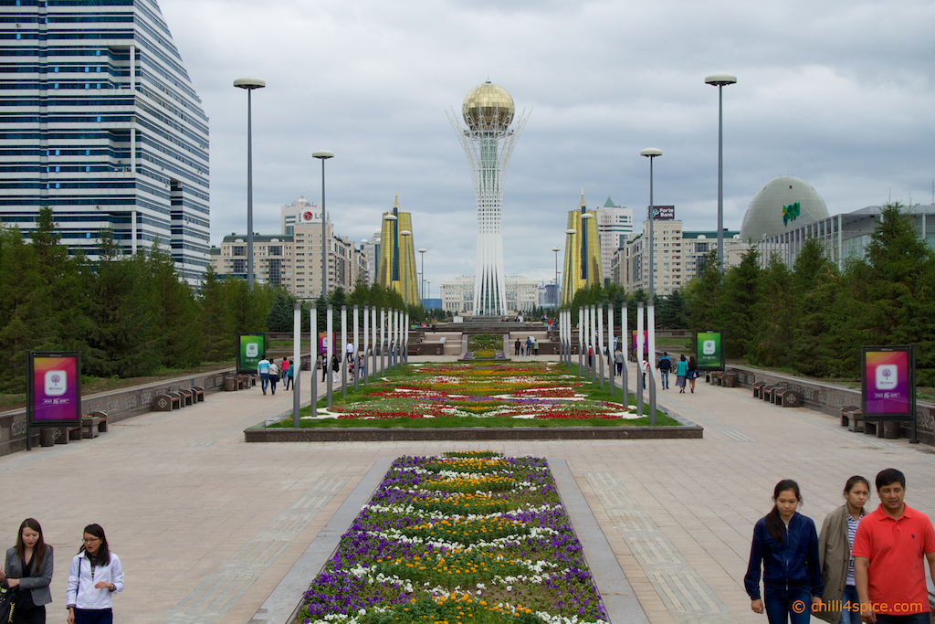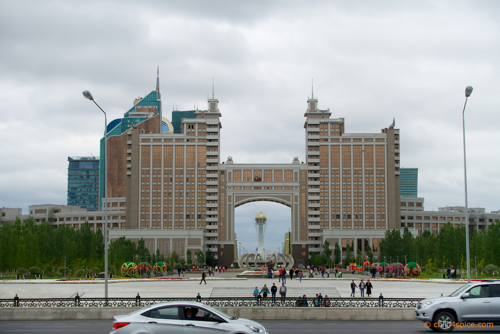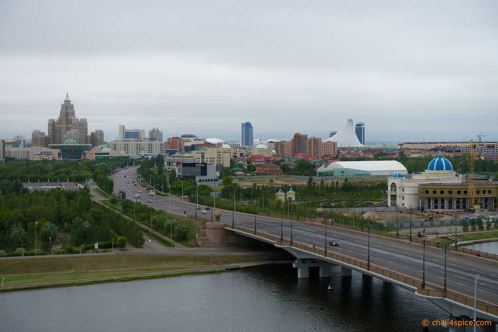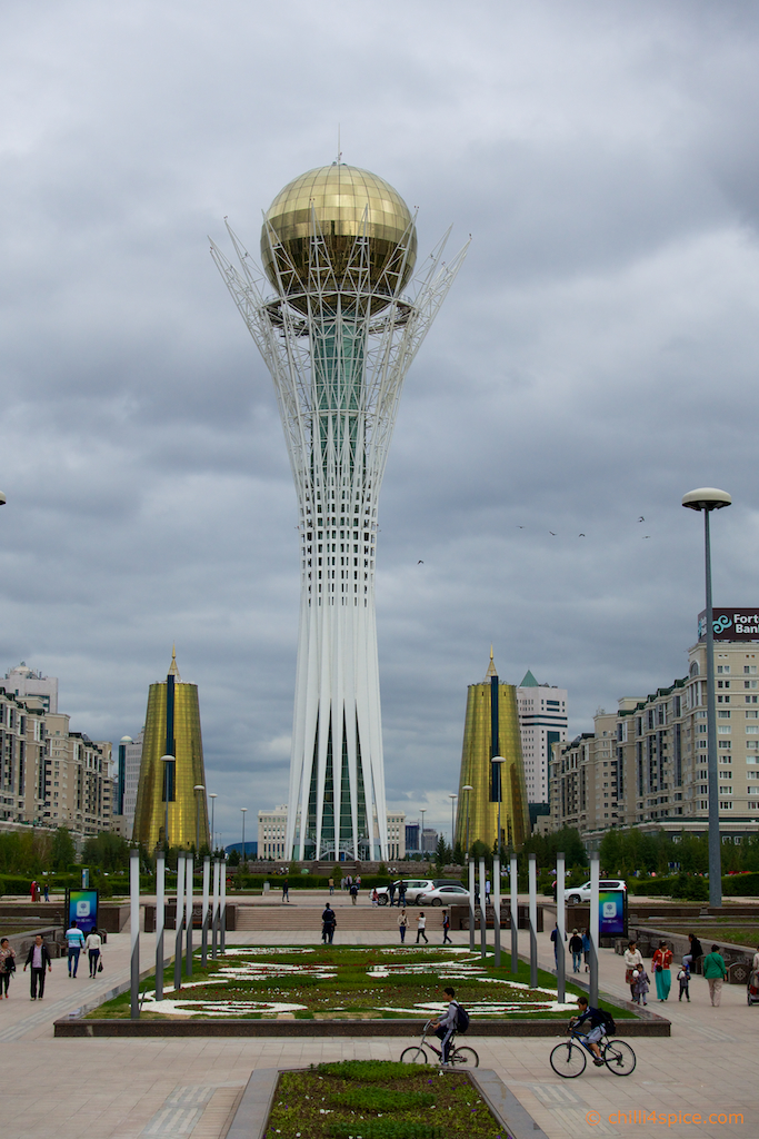 Das Wahrzeichen von Astana schon im Hintergrund zu erkennen.
