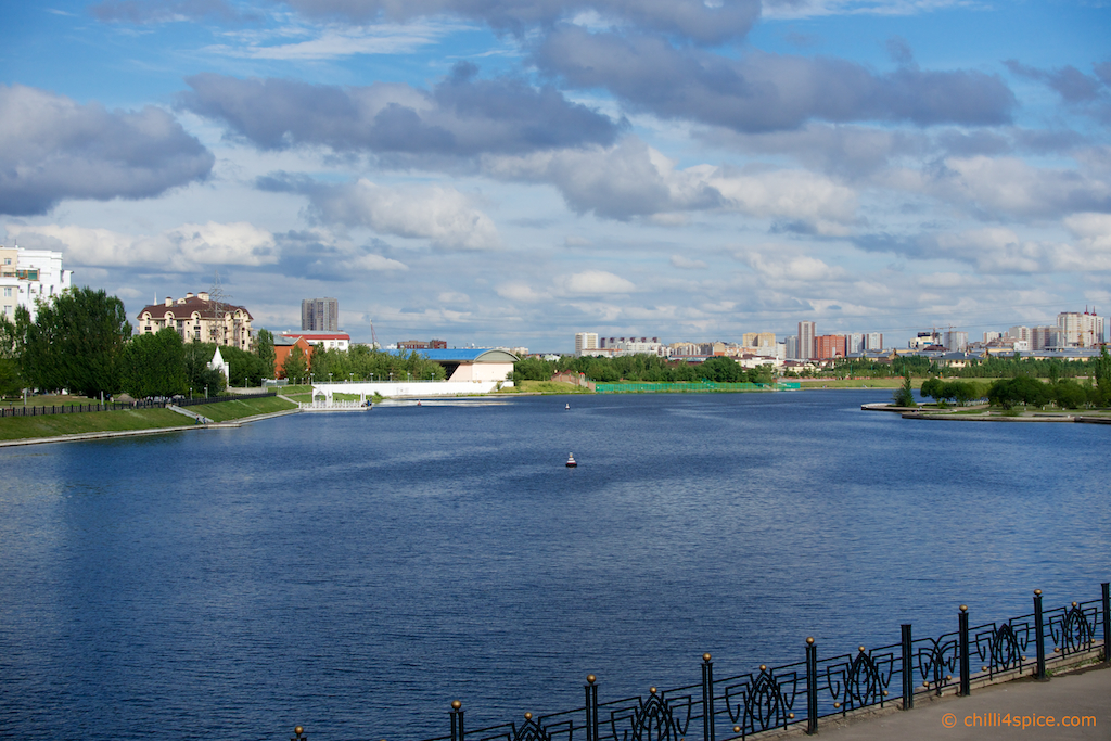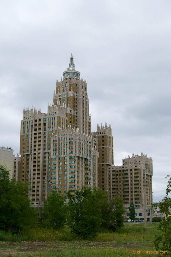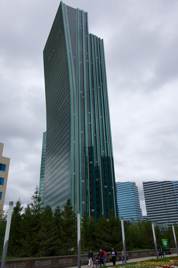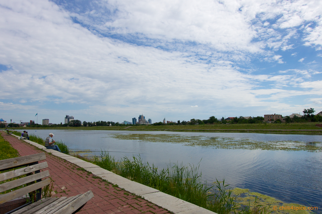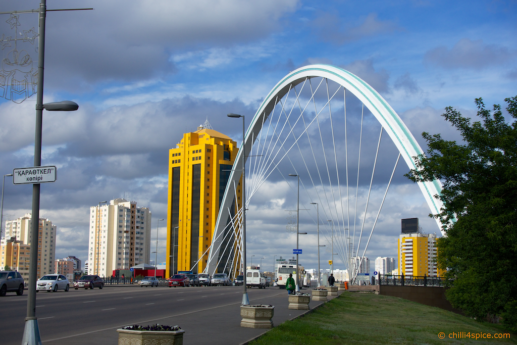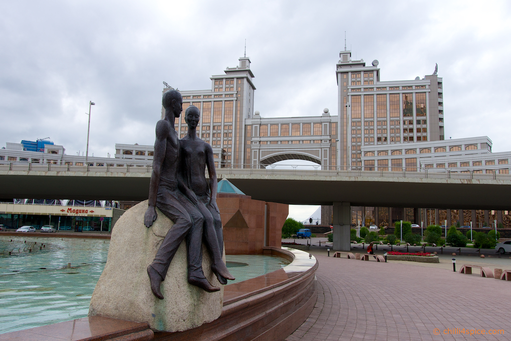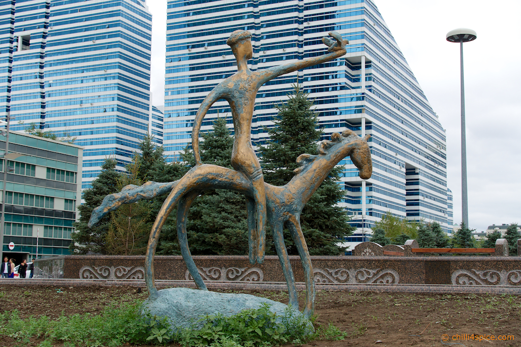 Das Wahrzeichen von Astana schon im Hintergrund zu erkennen.